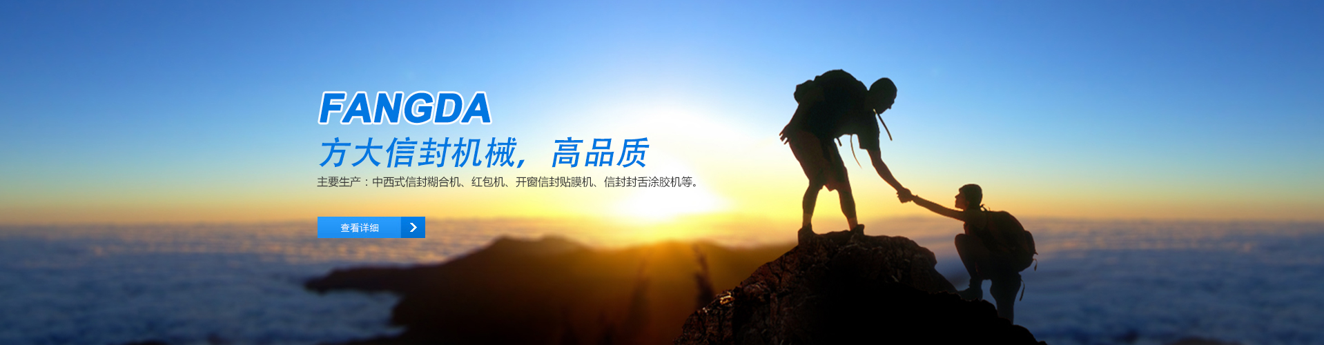 瑞安方大信封機械有限公司,是專業(yè)生產(chǎn)信封機糊合設(shè)備系列產(chǎn)品的企業(yè),主要產(chǎn)品有:中西式信封糊合機、紅包機、開窗信封貼膜機、信封封舌涂膠機等。實力來自規(guī)模,品質(zhì)源自專業(yè)。我廠擁有專業(yè)老練的工程設(shè)計人員,經(jīng)驗豐富的生產(chǎn)安裝人員,嚴(yán)謹(jǐn)認真的質(zhì)量檢驗人員,從而保證了所生產(chǎn)機械的優(yōu)良品質(zhì)。此外,我廠也將從技術(shù)上、性能上不斷改進提高,以更好的滿足客戶的需求。“客戶至上,服務(wù)為本”是我廠長期一貫的服務(wù)理念,從安裝、測試、保養(yǎng)、維修等售后服務(wù),我們會給予客戶充足的信息資訊與技術(shù)支持,因此在業(yè)界獲得良好的口碑及信譽,您的滿意是我們的榮耀!歡迎您來電查詢、來人參觀,我們一定能給你滿意的答復(fù)!秉承“顧客至上,銳意進取”的經(jīng)營理念,堅持“客戶為先”的原則為廣大客戶提供溫馨的服務(wù)。歡迎惠顧!